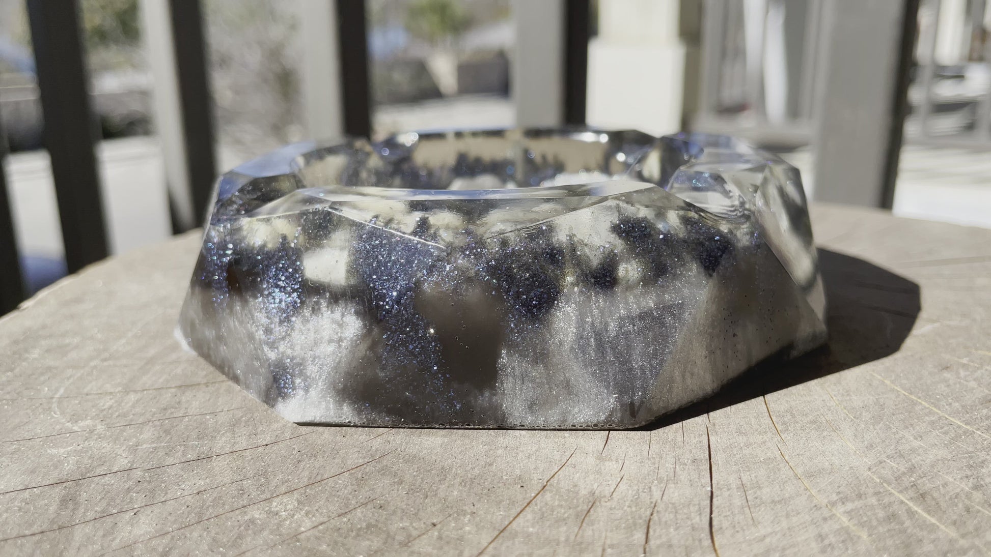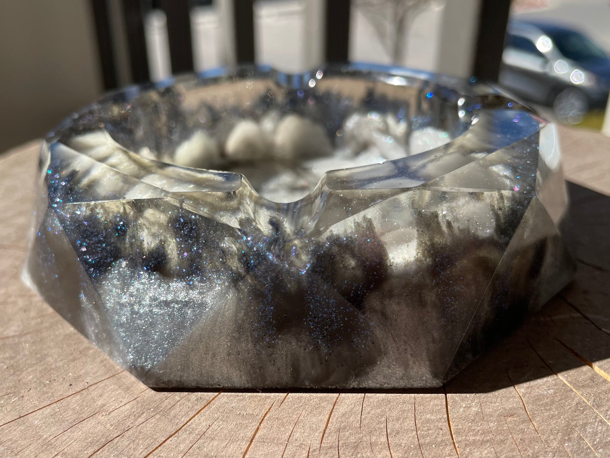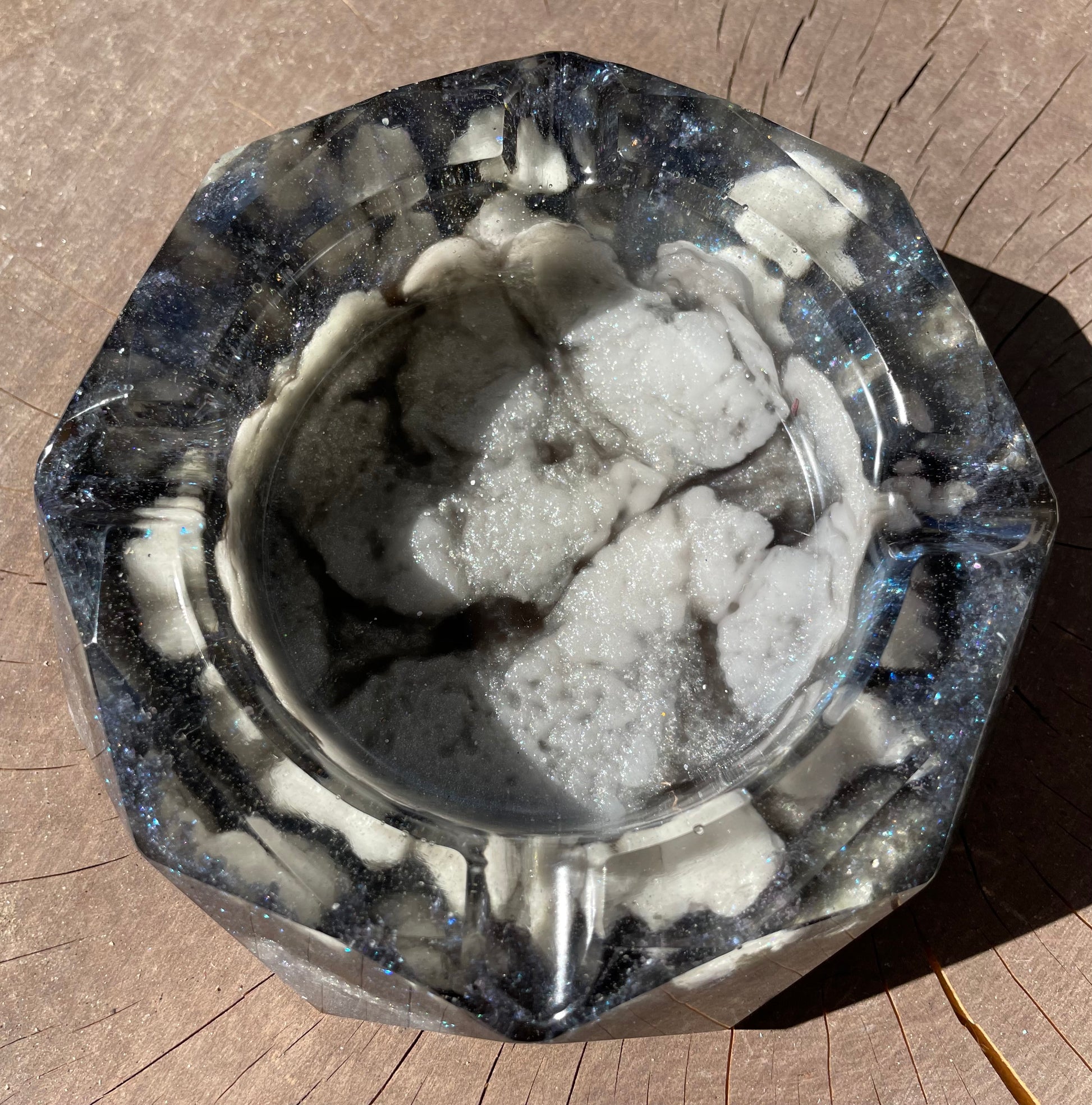 This dish is made with black and white pigment, and added holographic pigment sparkles.