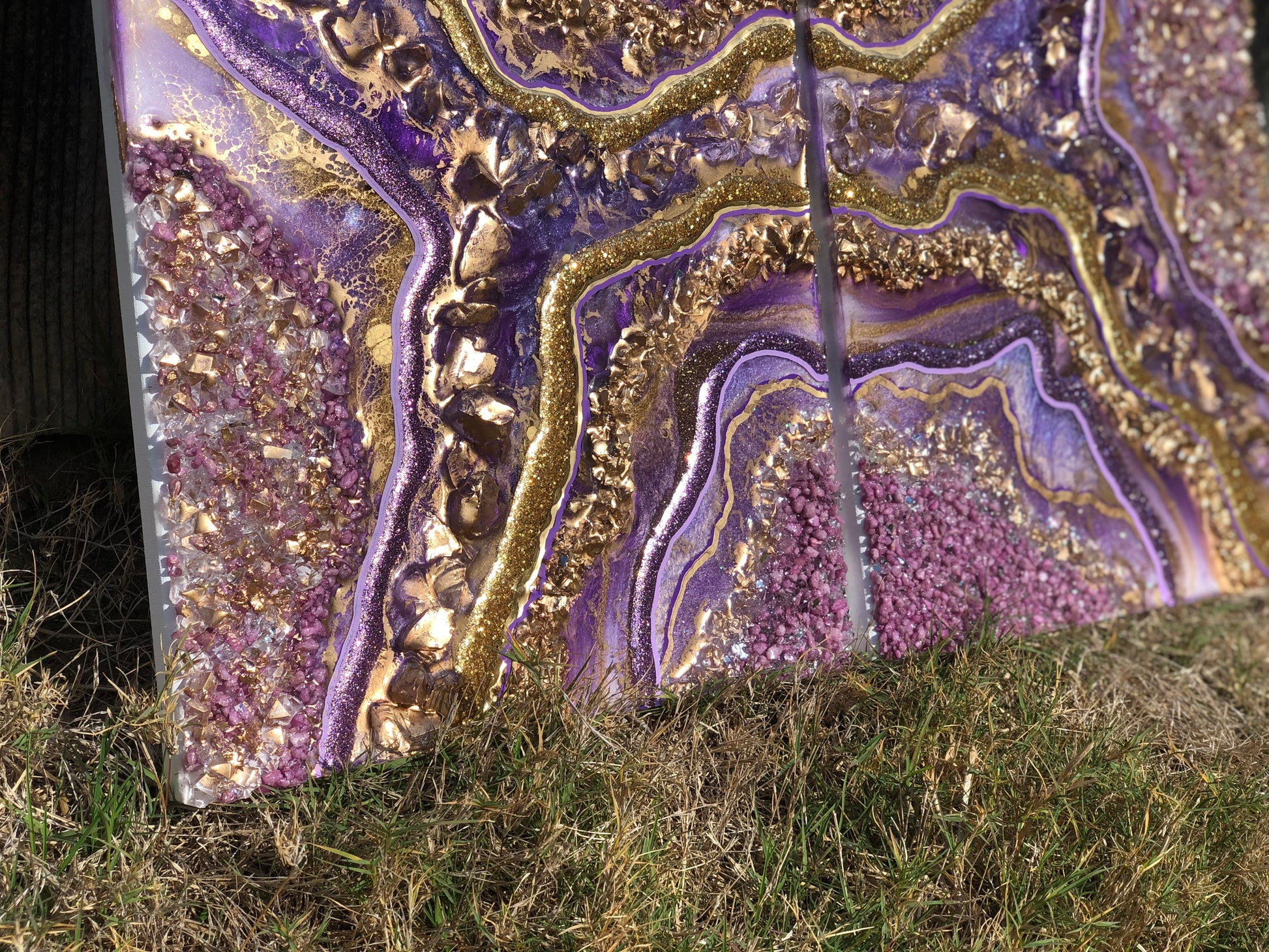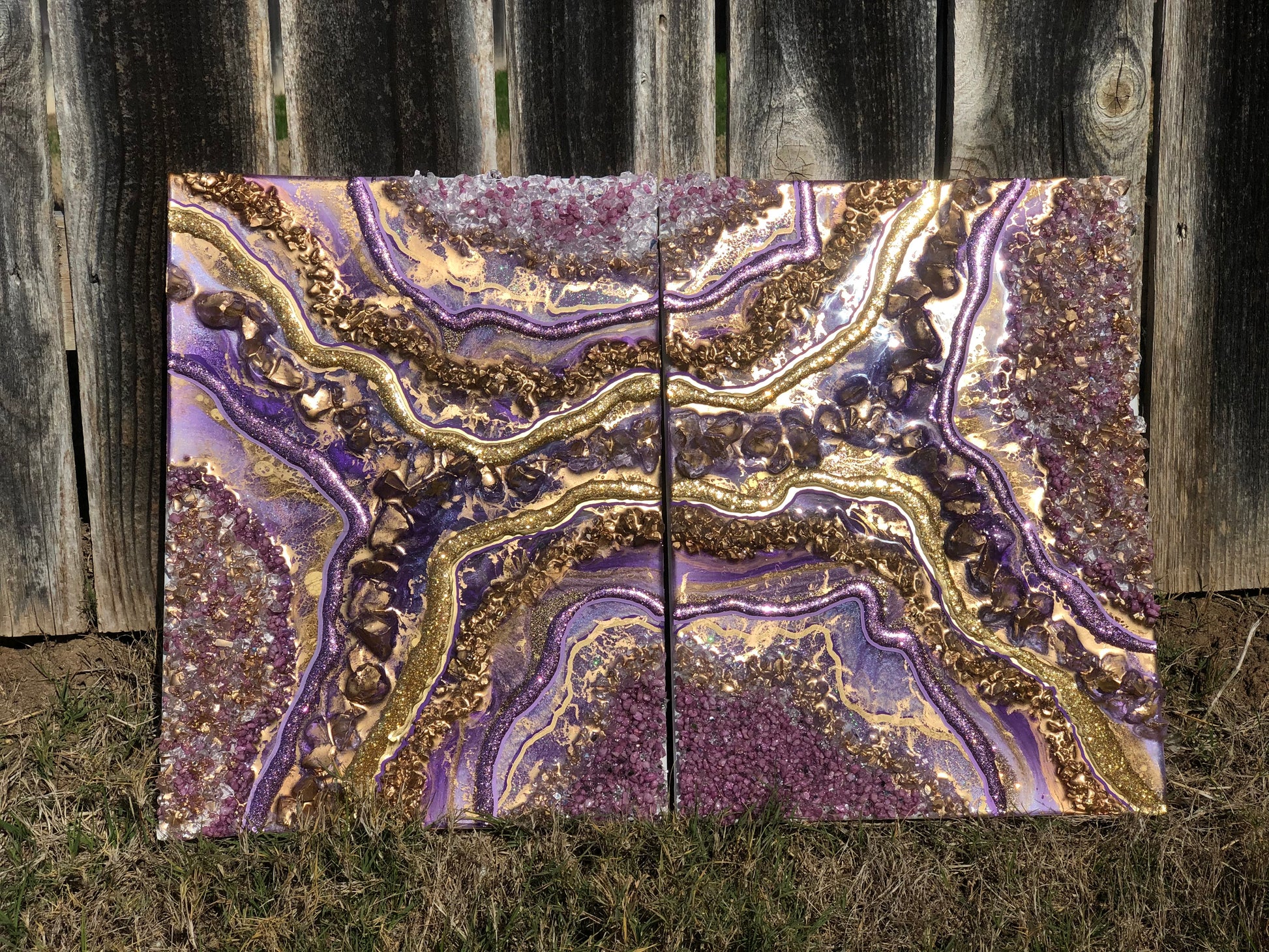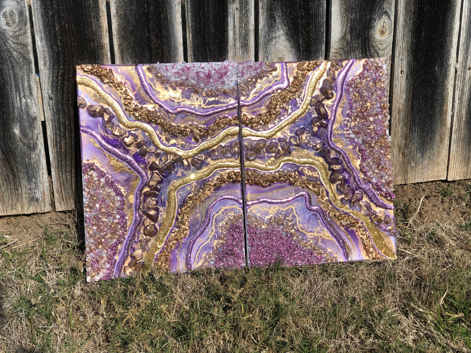 Purple & gold geode set 2 12x16 canvases (measures 24x16 when together)