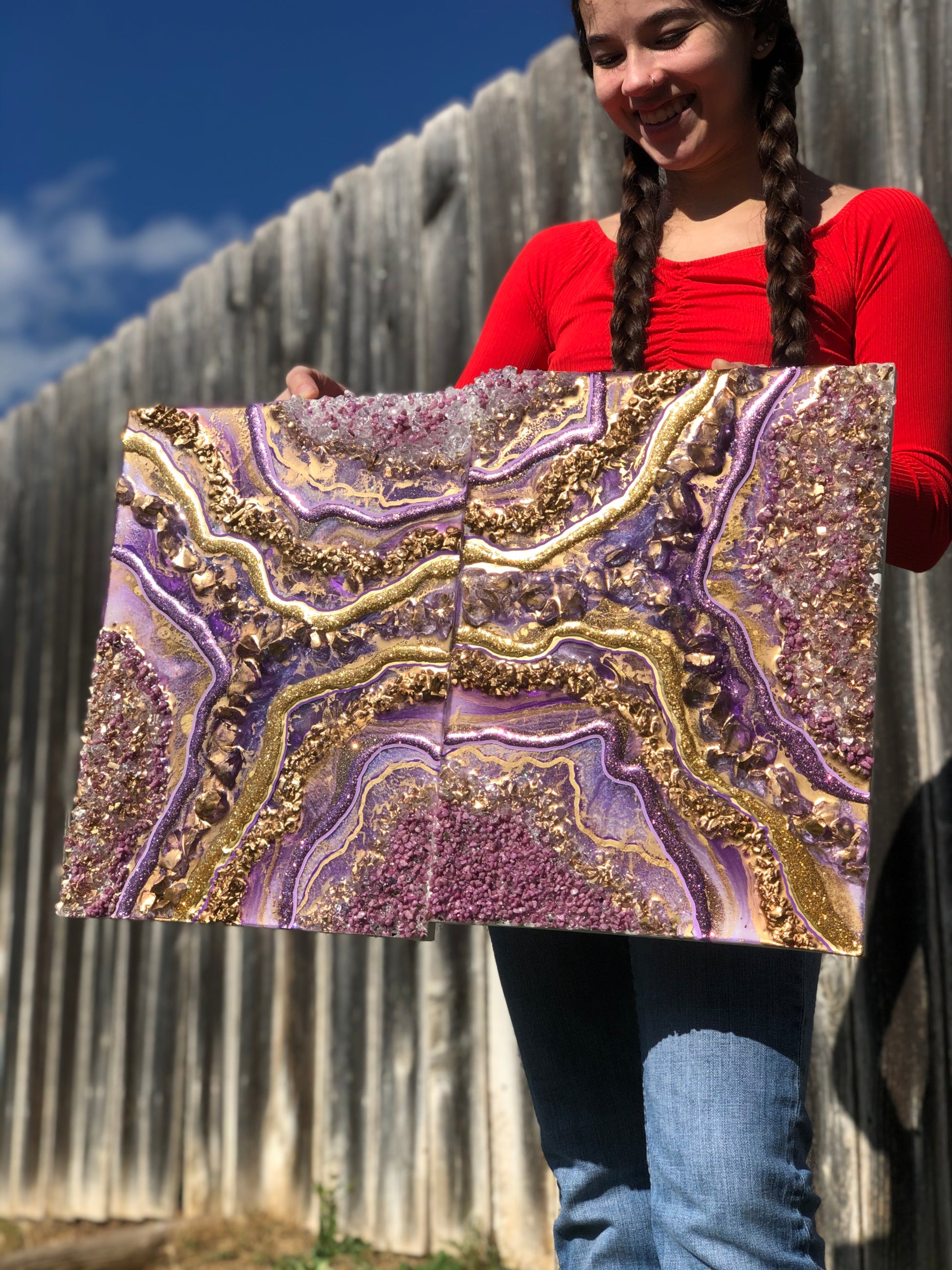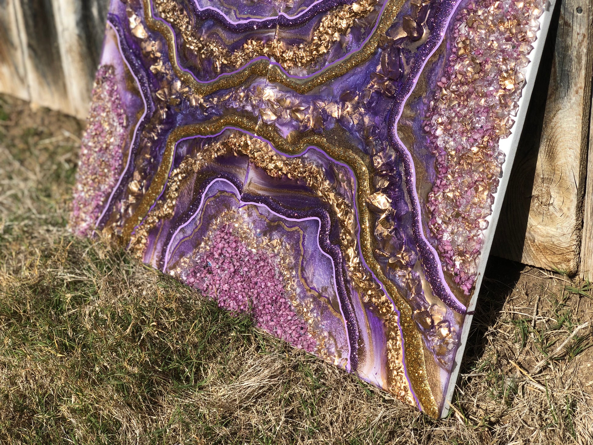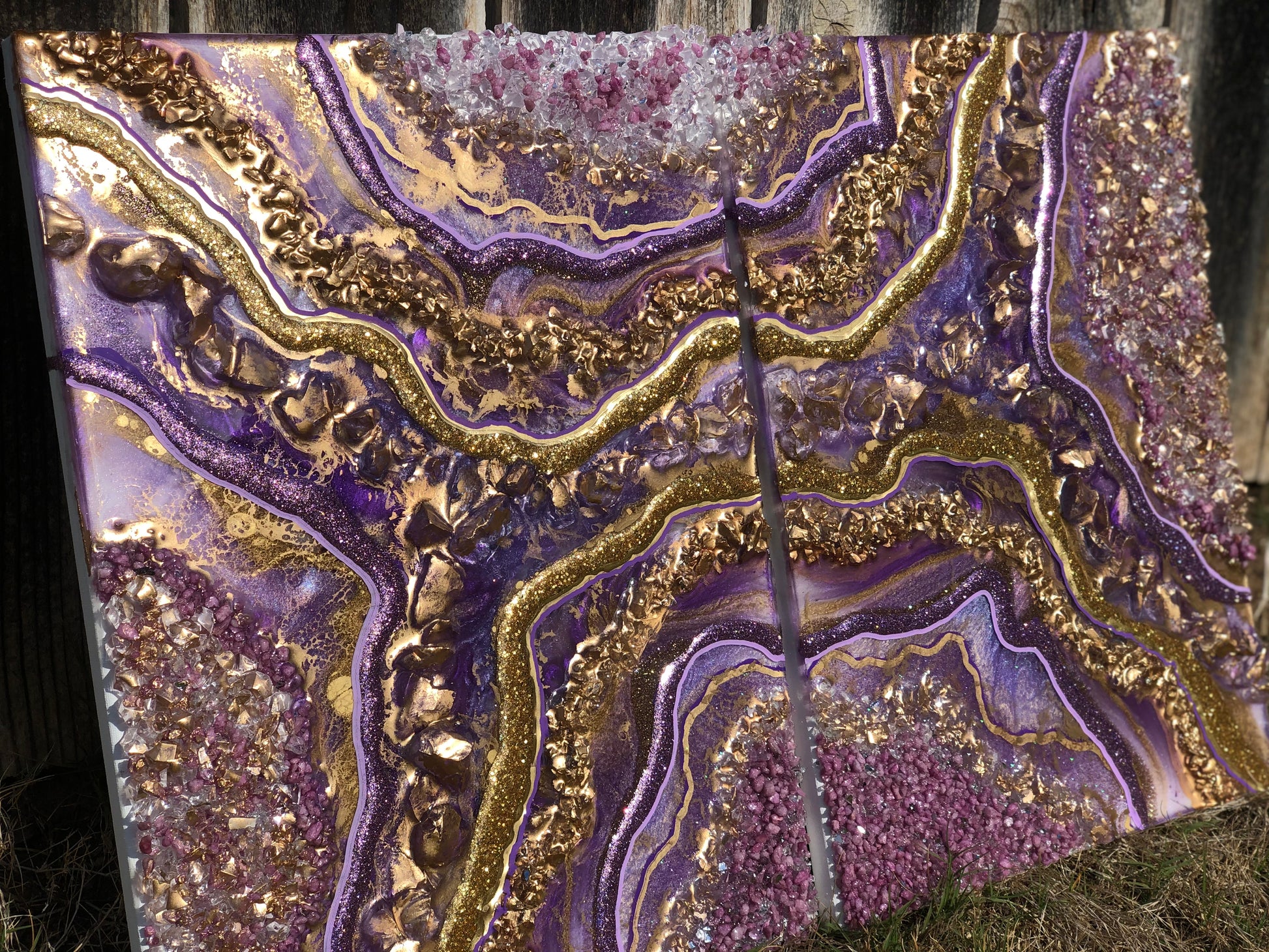 Purple & gold geode set 2 12x16 canvases (measures 24x16 when together)
