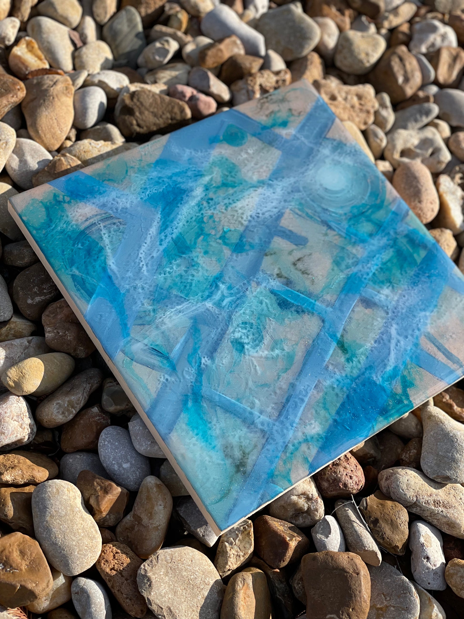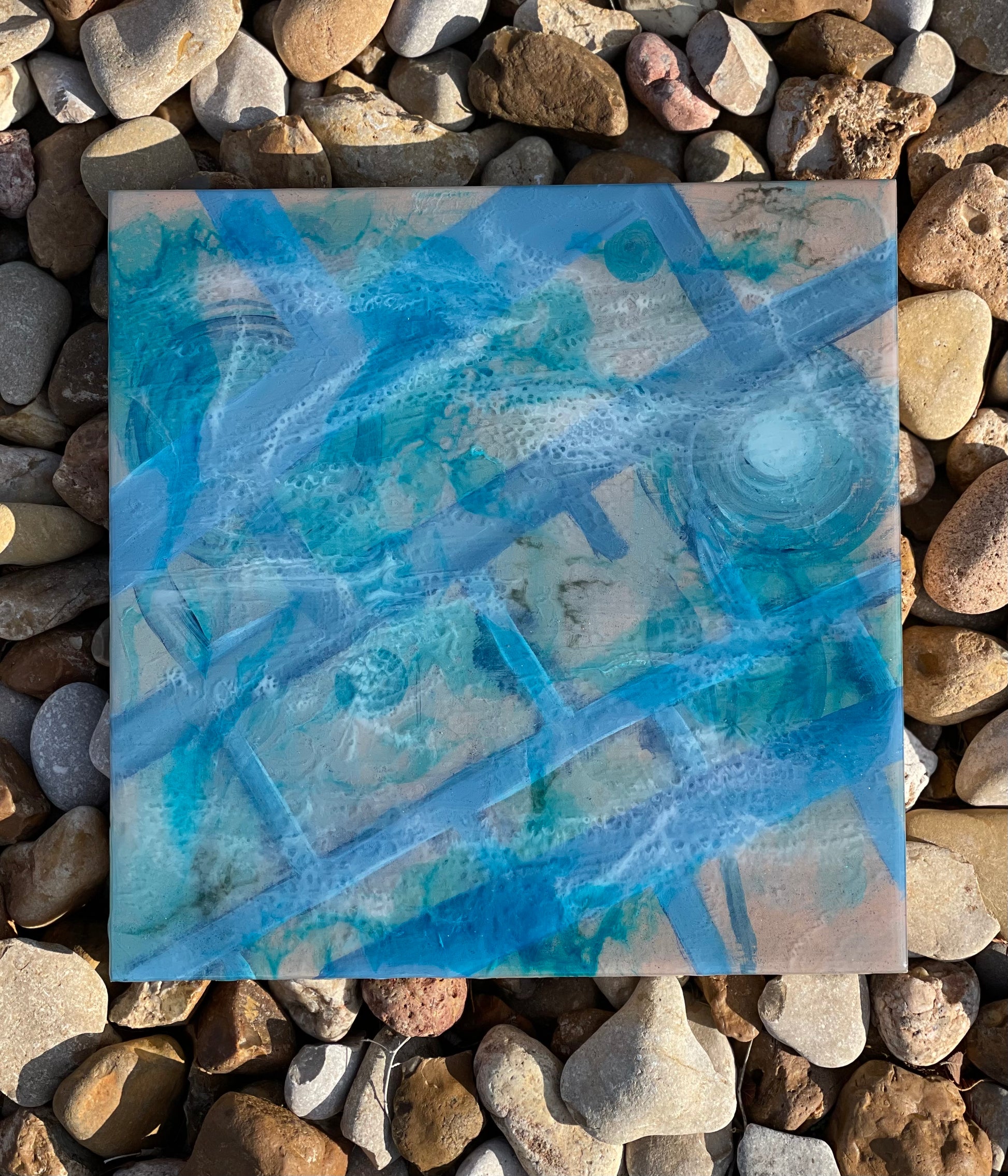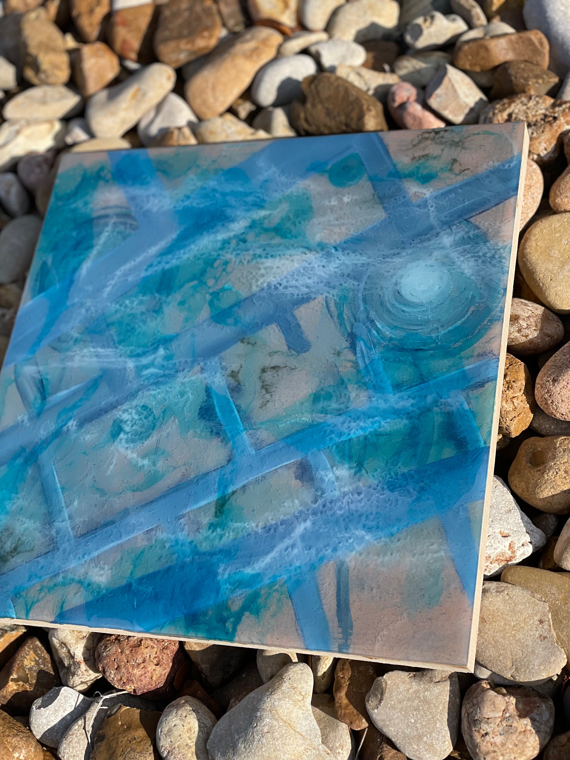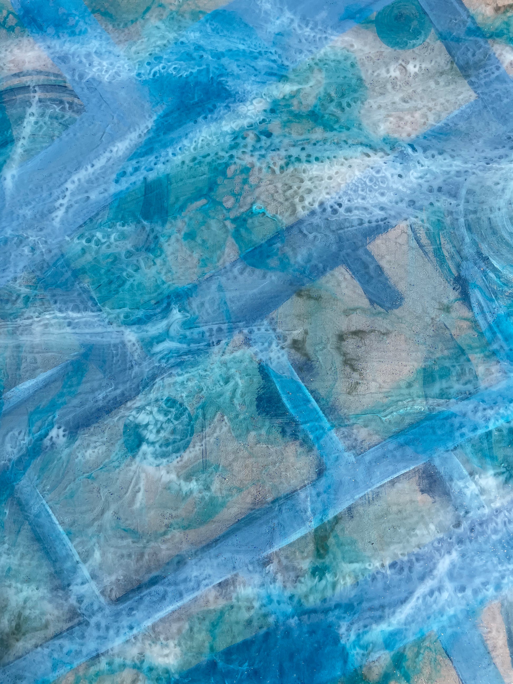 This piece consist of a painted background, and 3 resin layers of enhanced detail (glitter, and foggy effect).