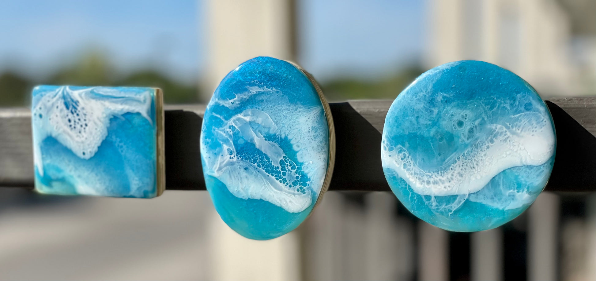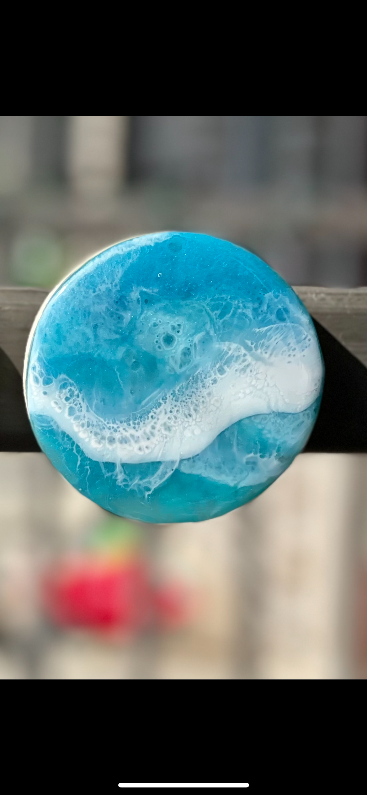 This listing is for the circle ocean magnet. This magnet is roughly 2” wide & is supported in the back with cork and a lightweight magnet.