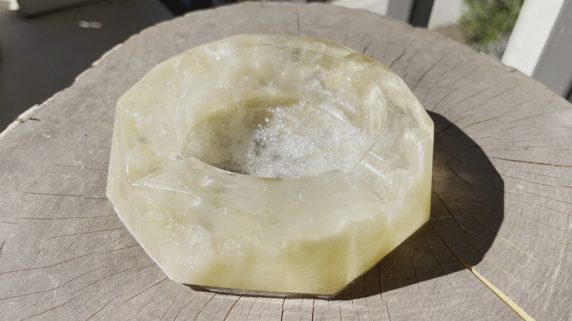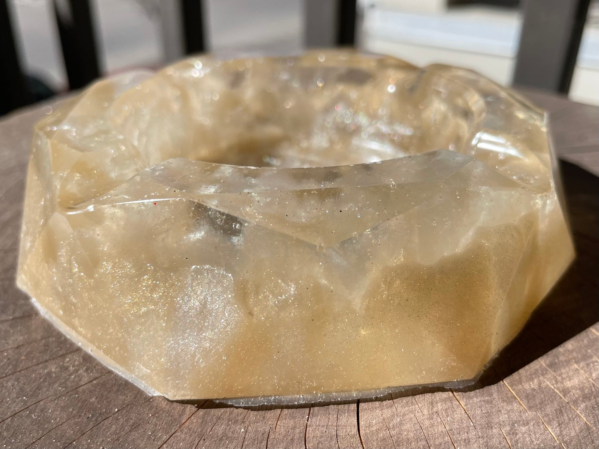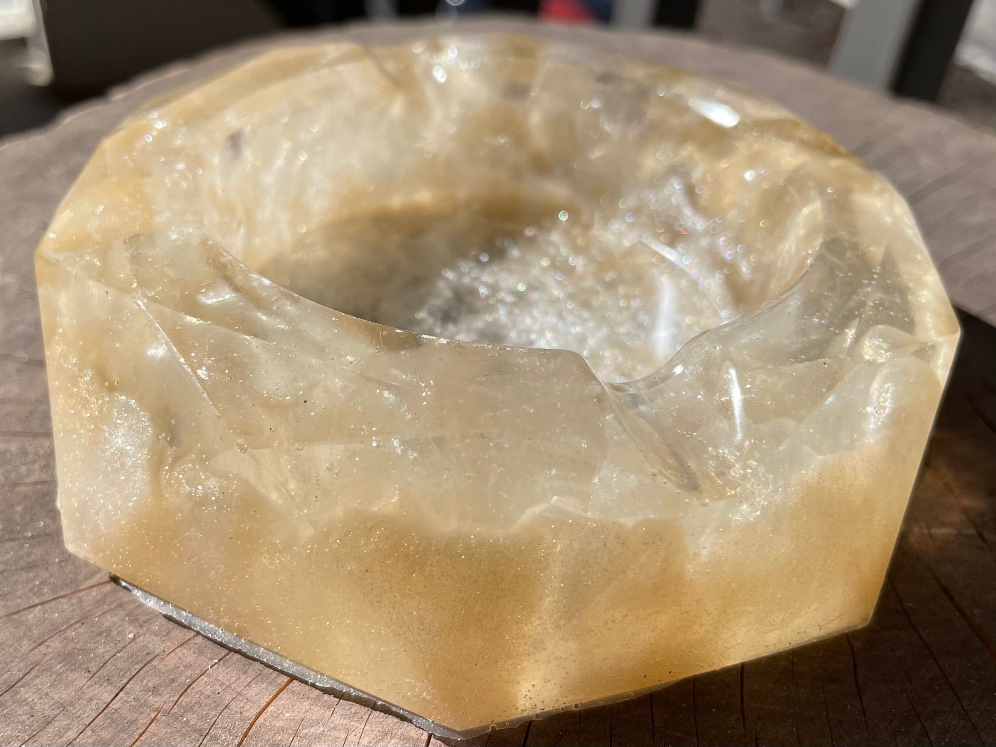 This catch all dish is made of a beige pigment & sparkle pigment.