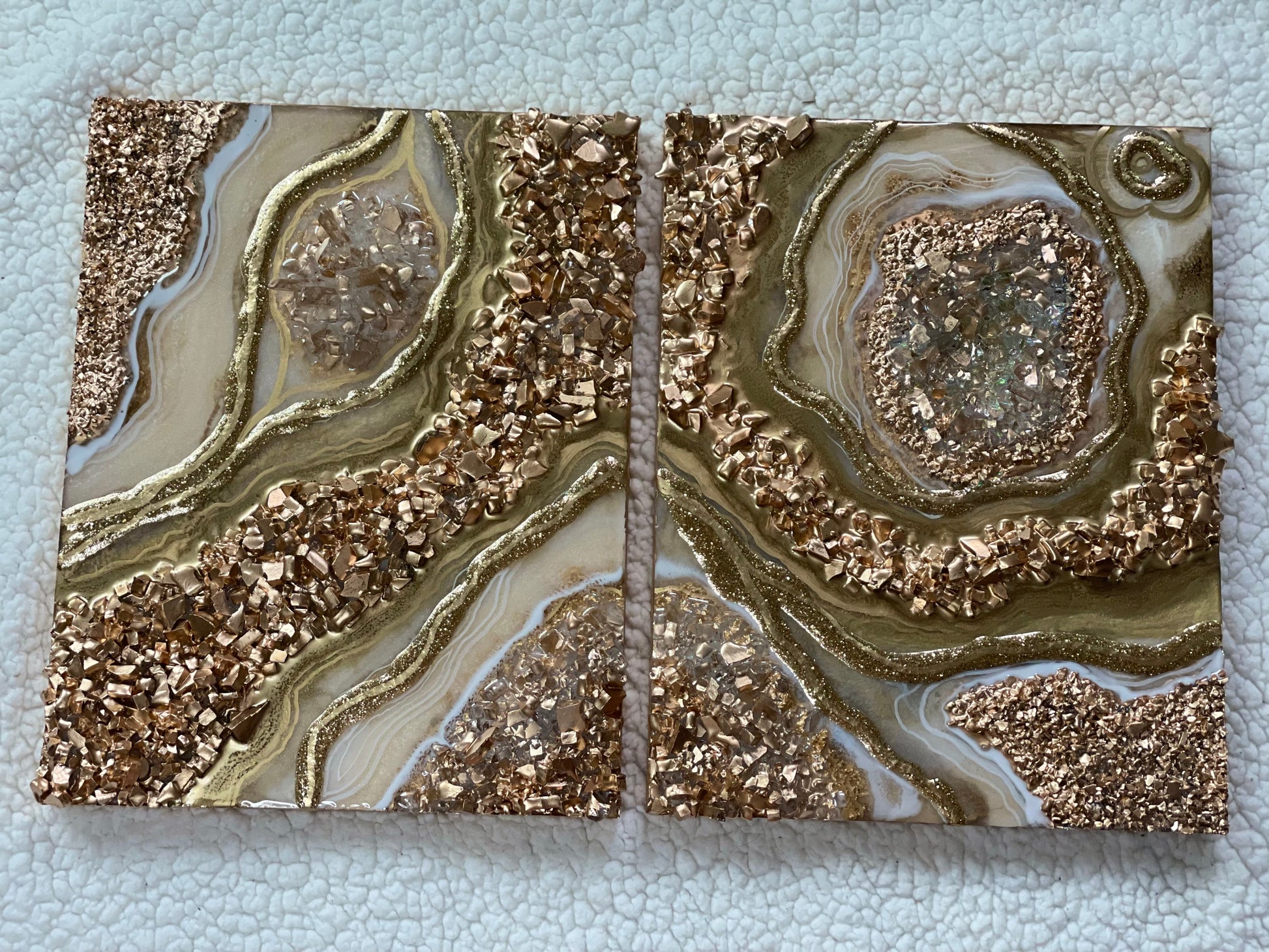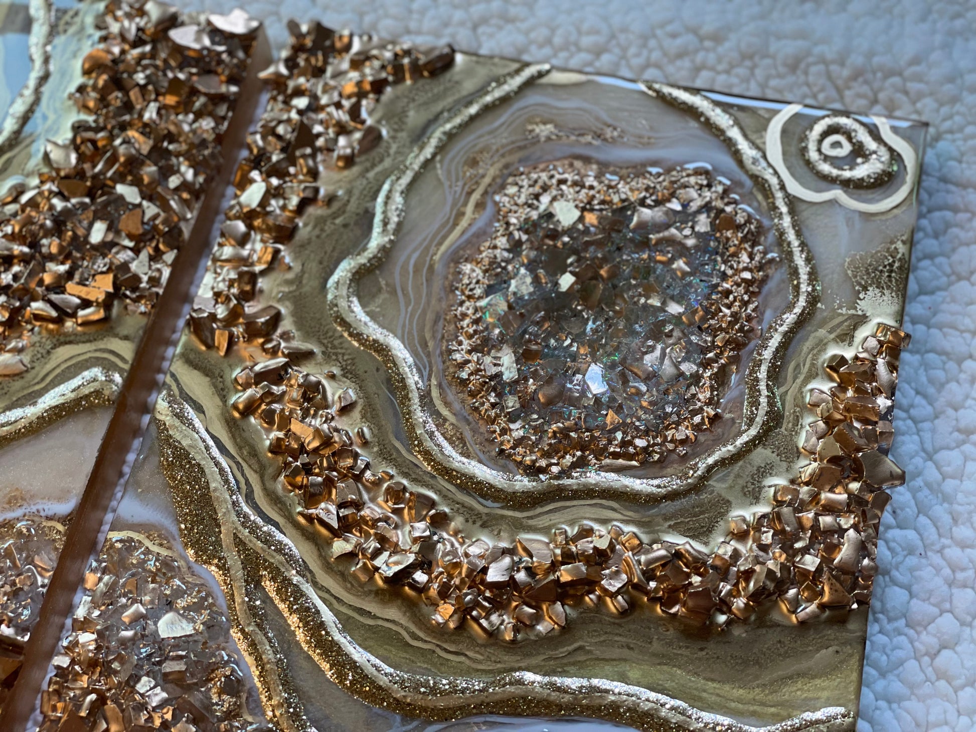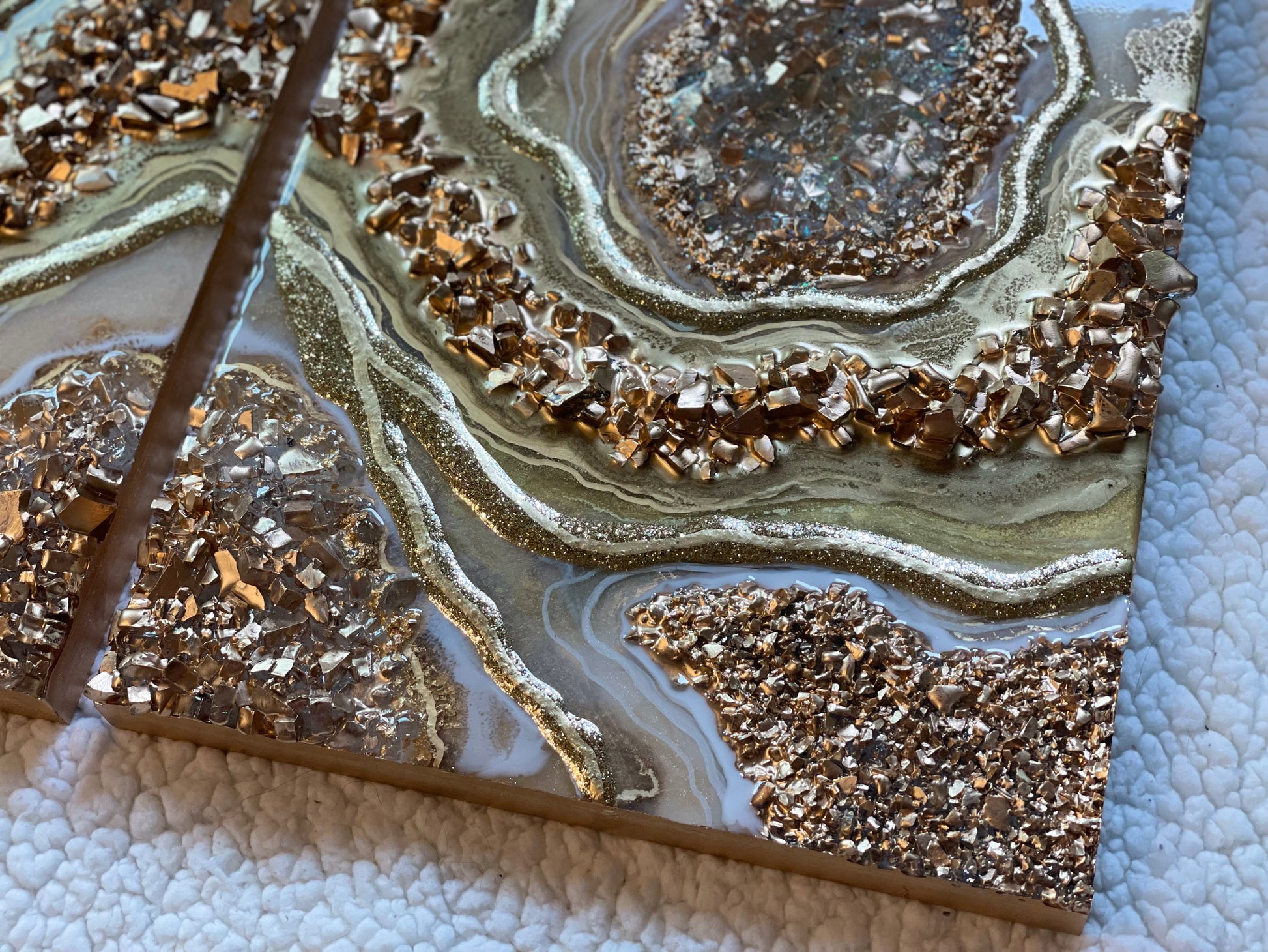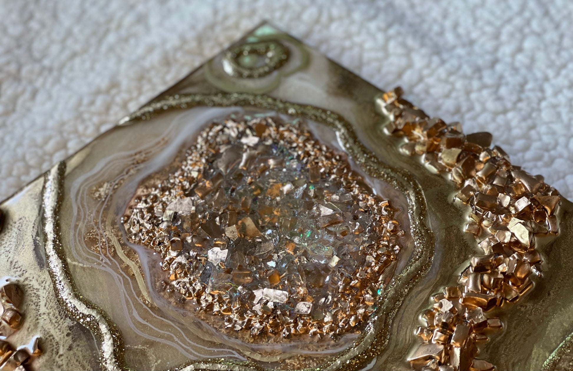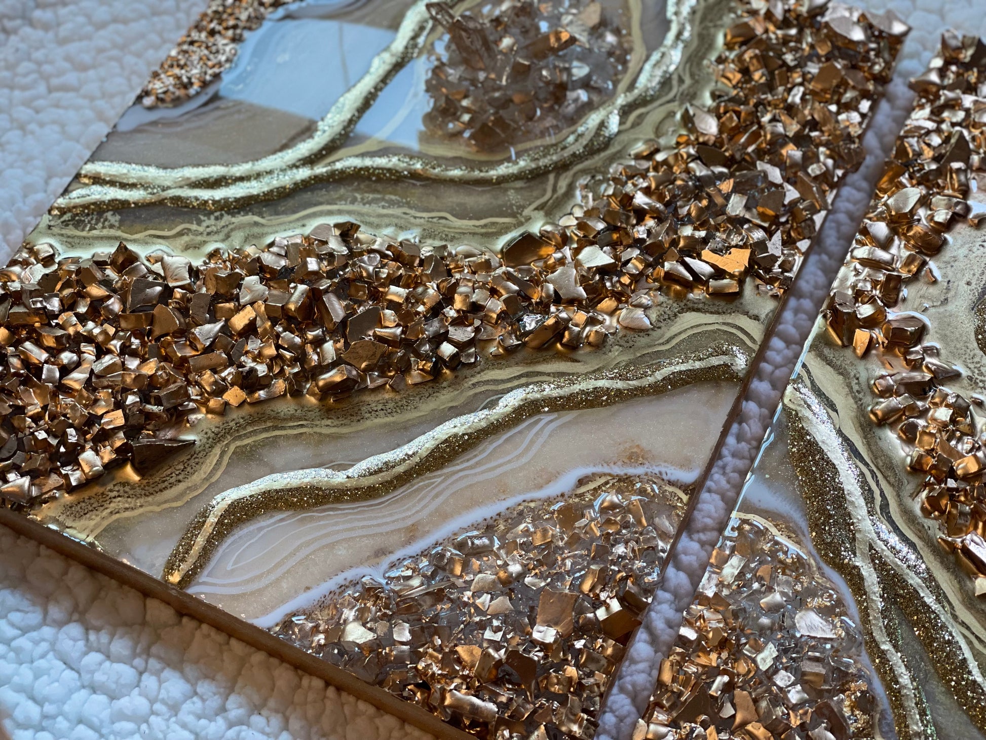 Made with shades of white, creme, and gold with additional gold glitter lines.