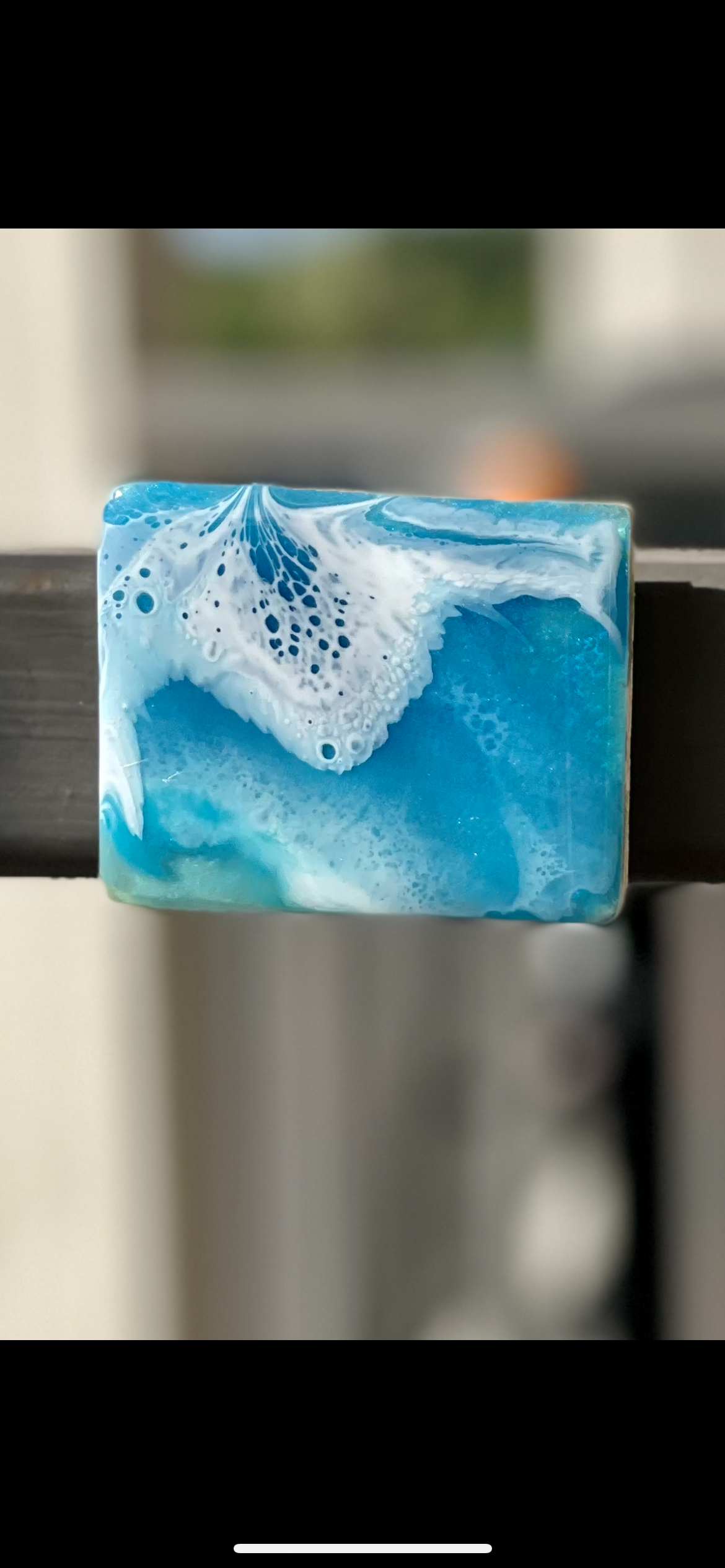 This magnet is roughly 2” wide & is supported in the back with cork and a lightweight magnet.