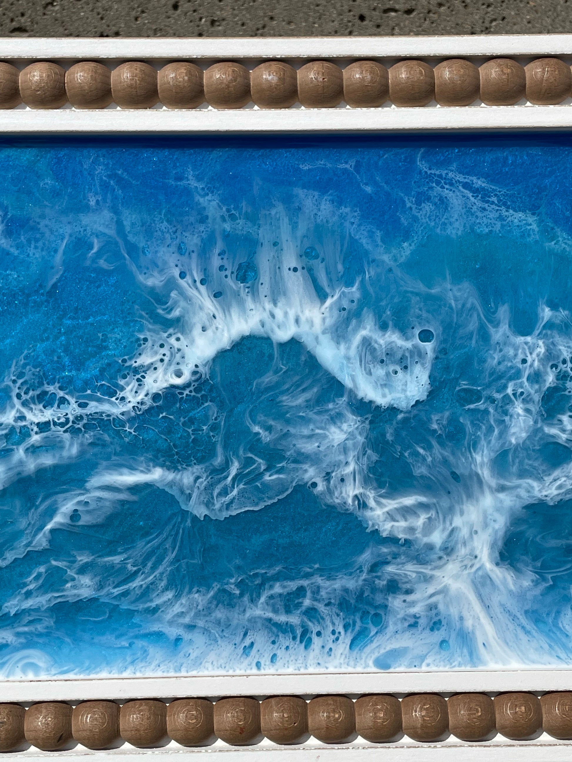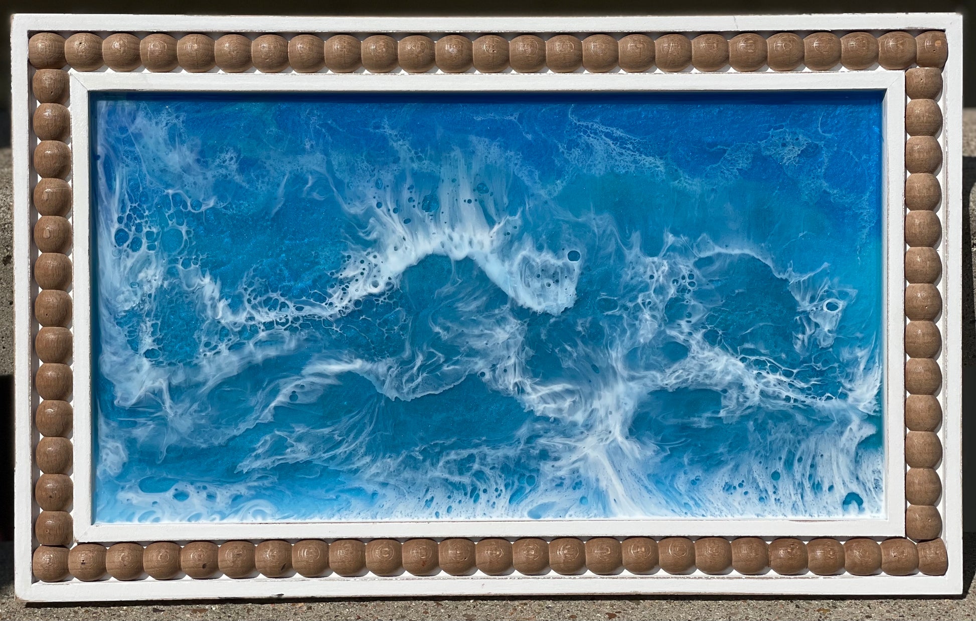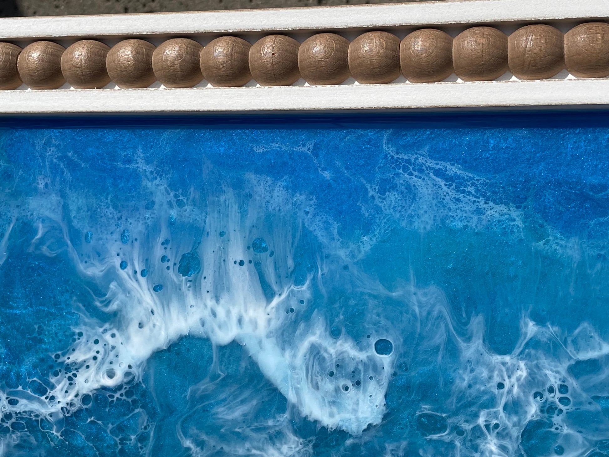 10x16 ocean art on a whitewash beaded wood panel hung with two sawtooth hangers