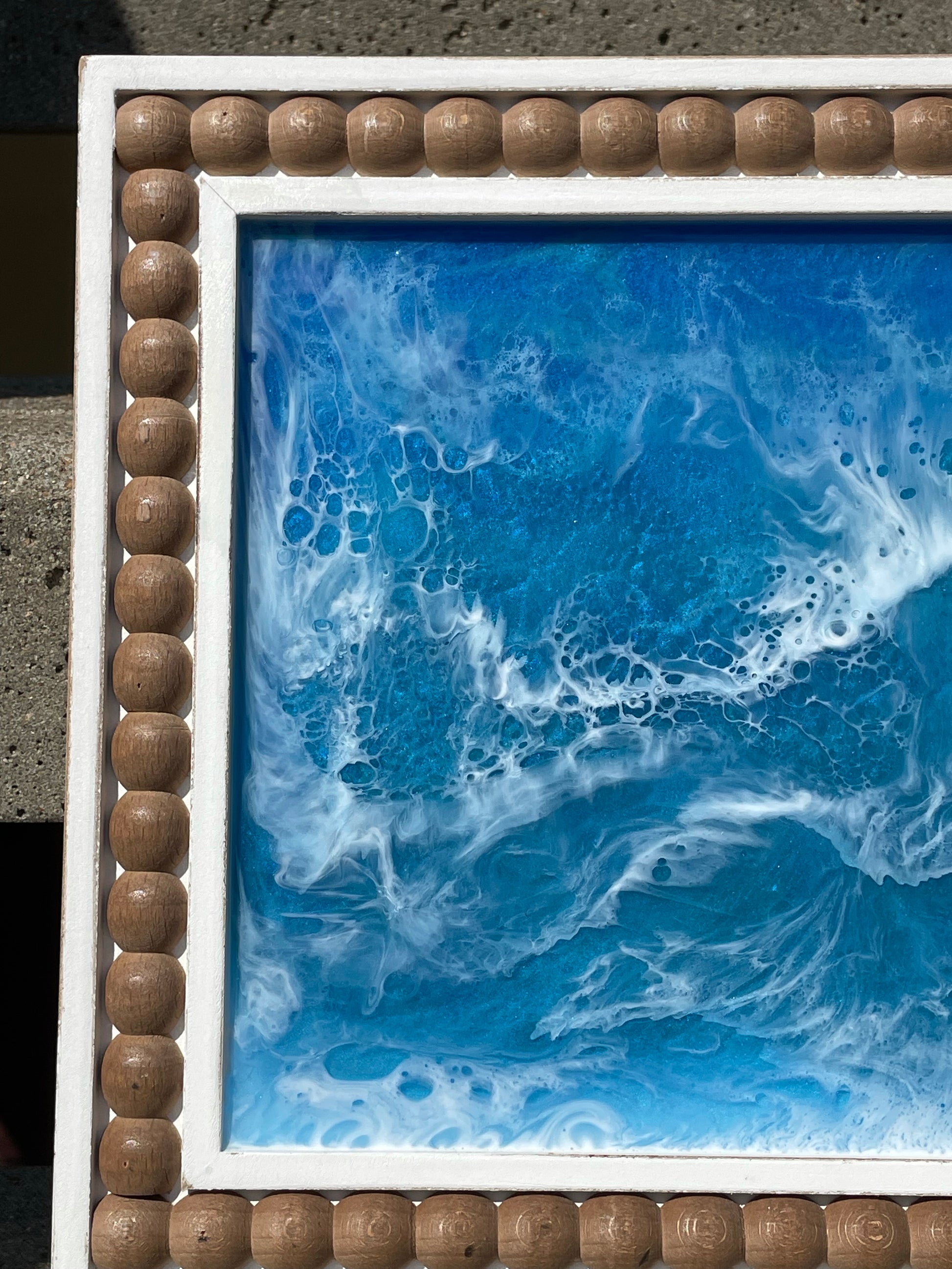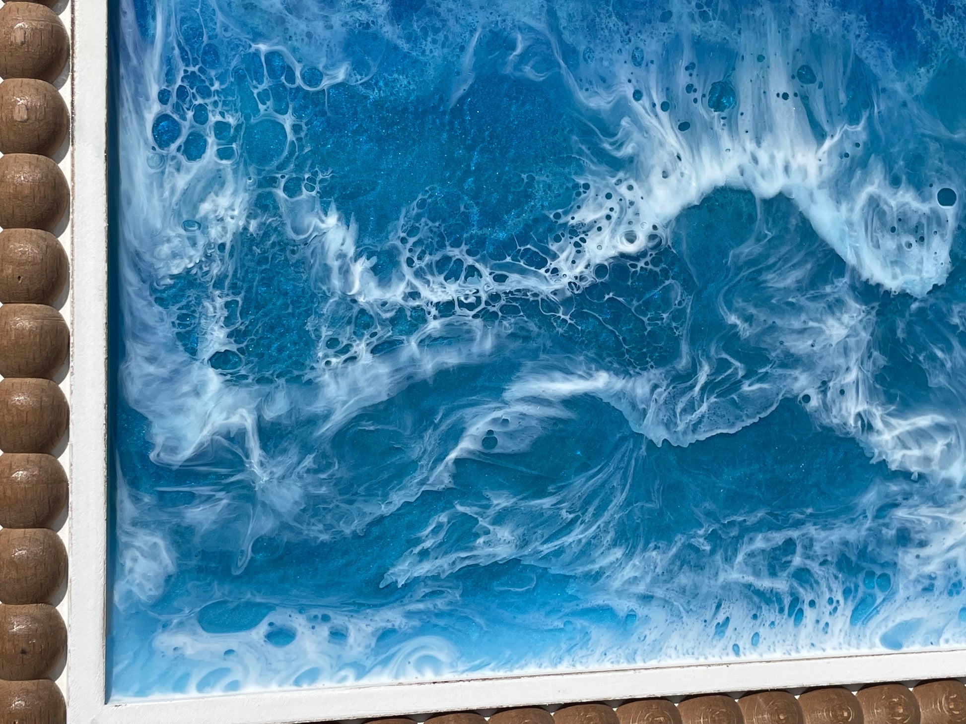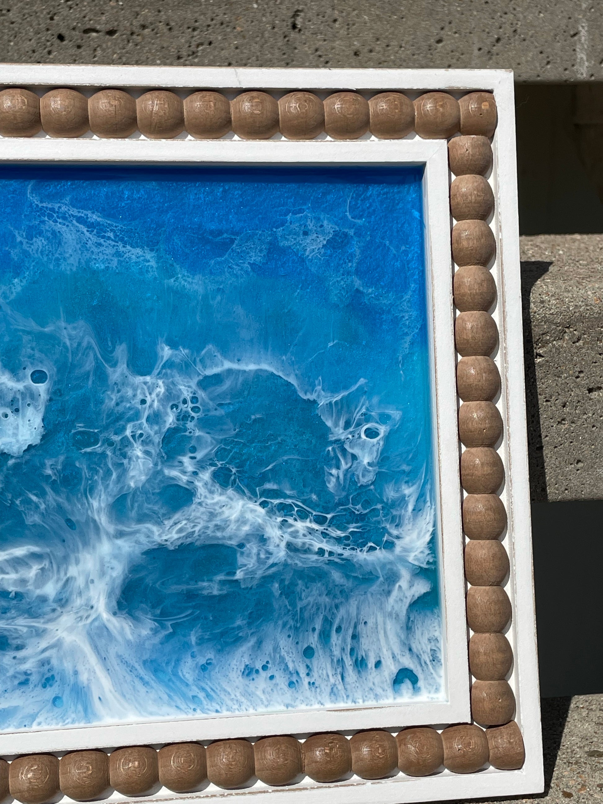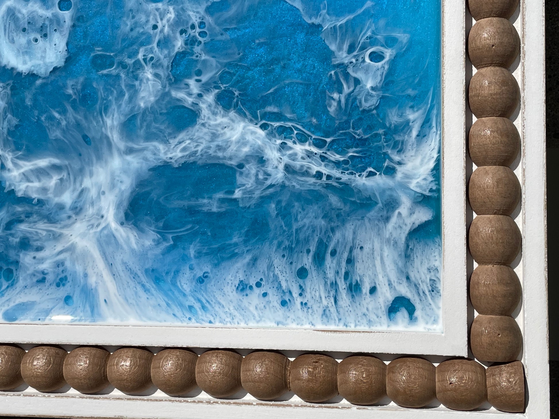 10x16 ocean art on a whitewash beaded wood panel hung with two sawtooth hangers